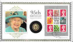 UK (Alderney) Queen's 95th Birthday ‘Struck on the Day' One Pound Gold Proof, 22ct, inset in a related commemorative cover, with certificate. Coin weight 8grms