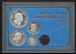 India 1985 Indira Gandhi 4-coin proof set, in issued case.